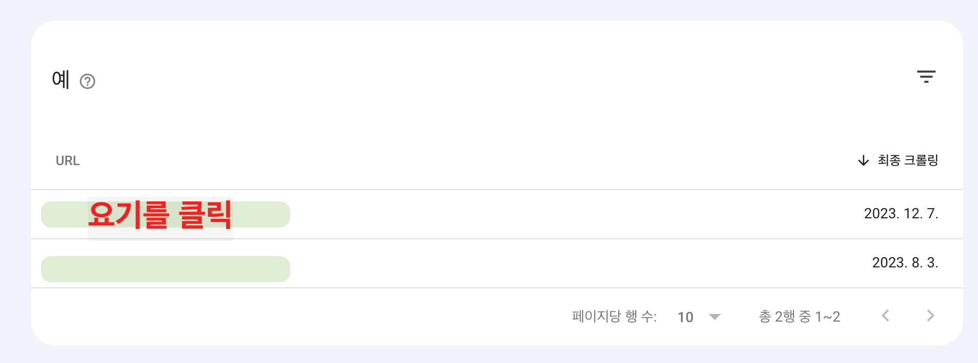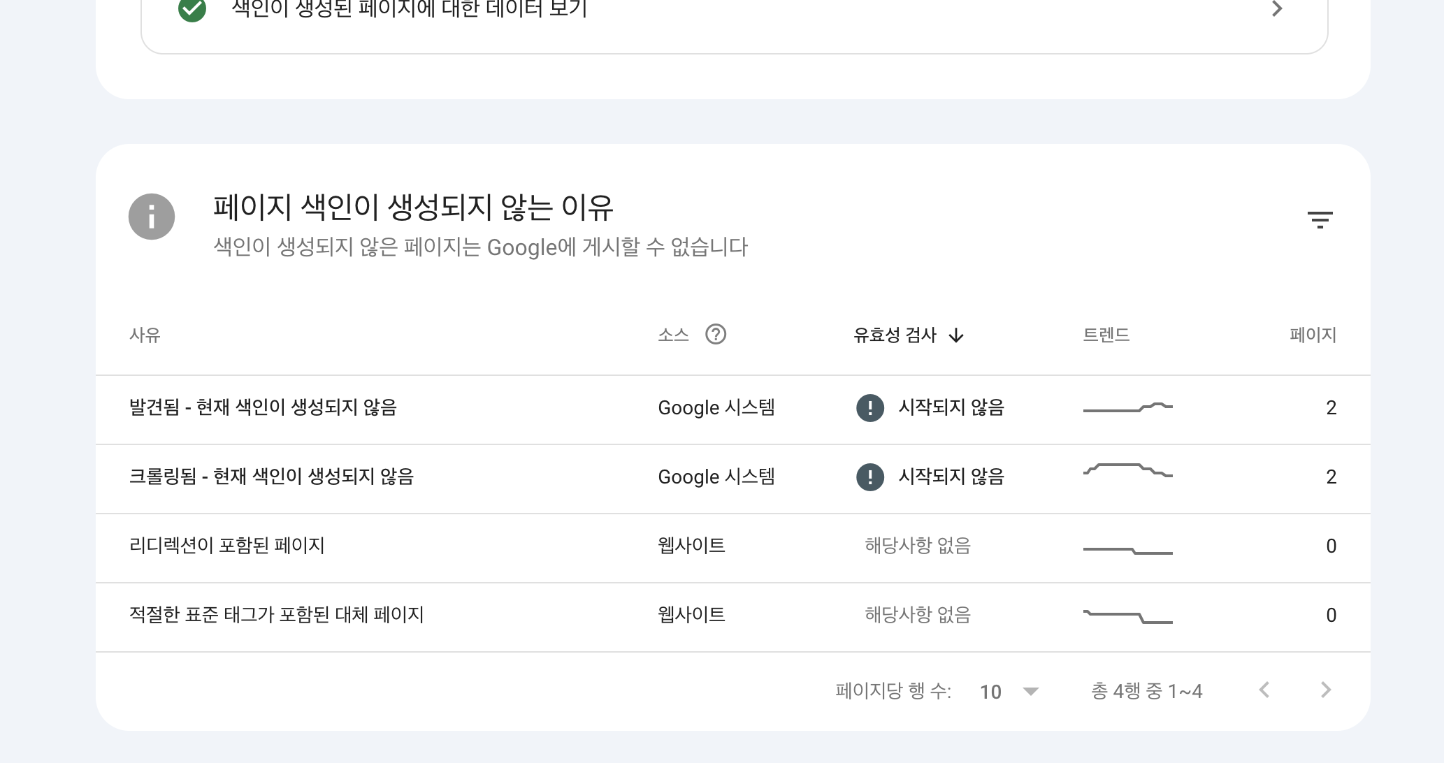 2. 색인생성 되지 않은 페이지 확인 후 클릭