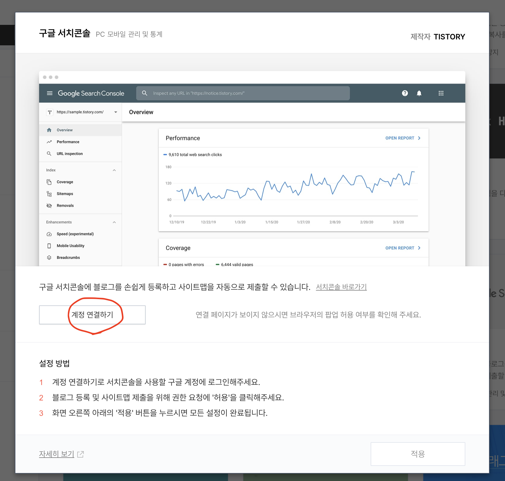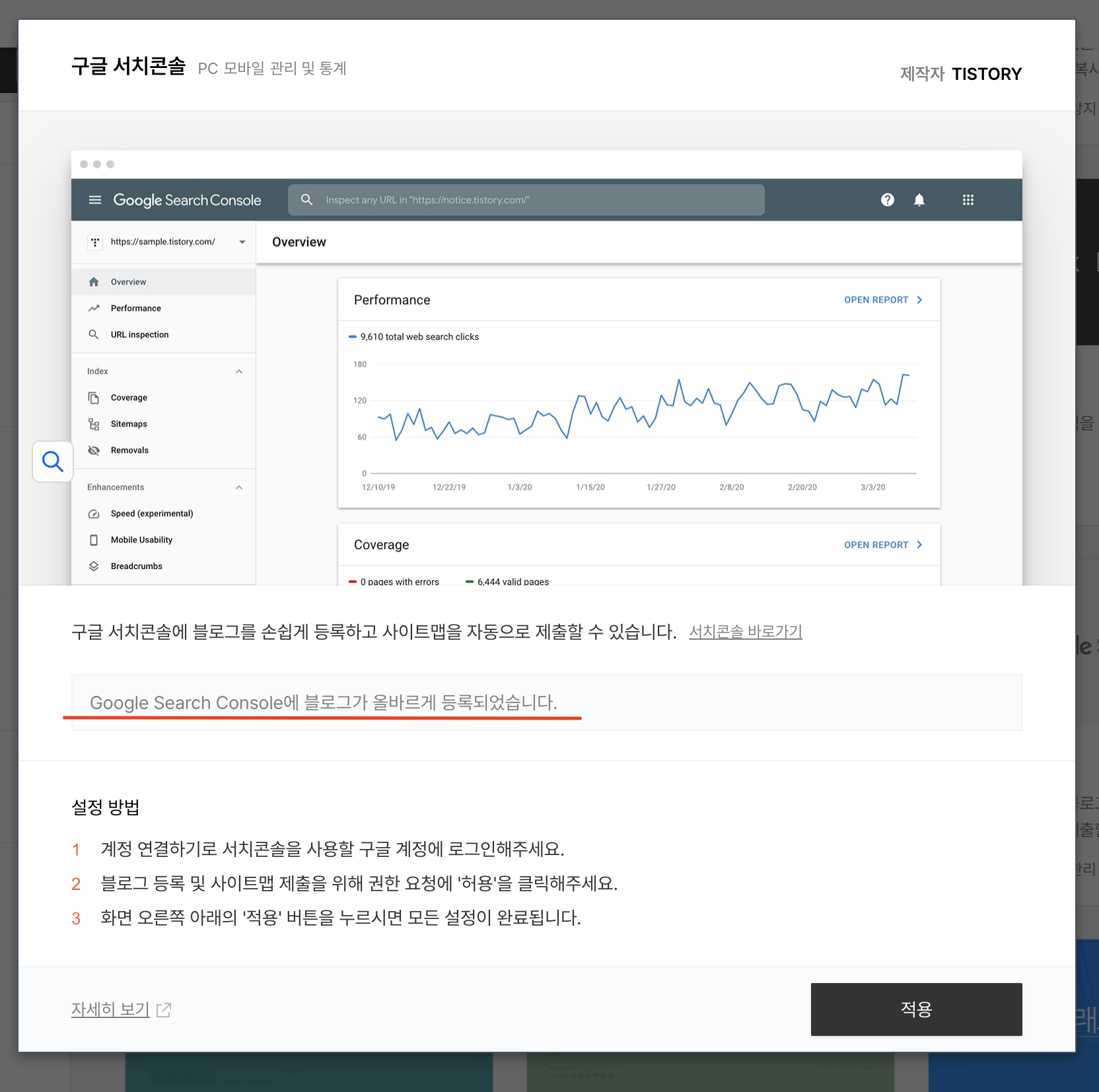 이렇게 먼저 티스토리에 구글 서치콘솔을 플러그인해줍니다.